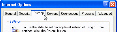 3. The Internet Options Dialog will display, then click on the Privacy Tab